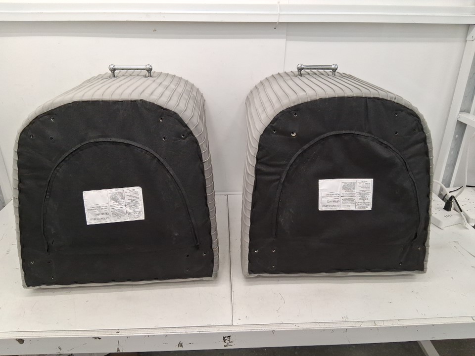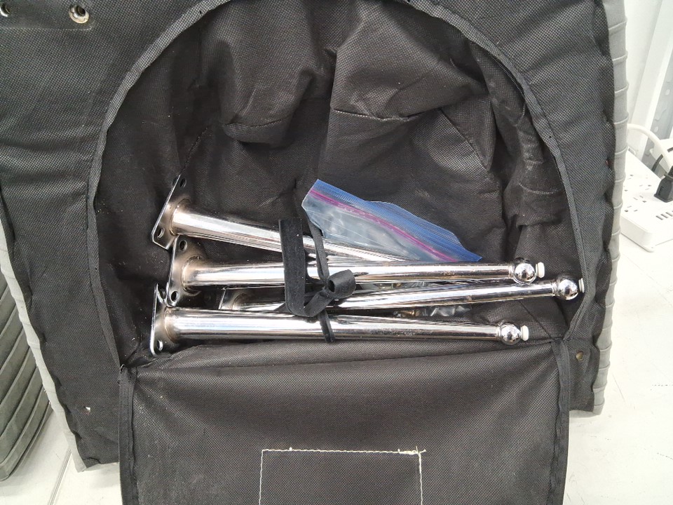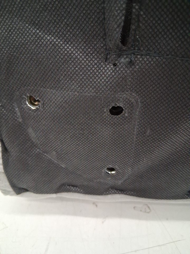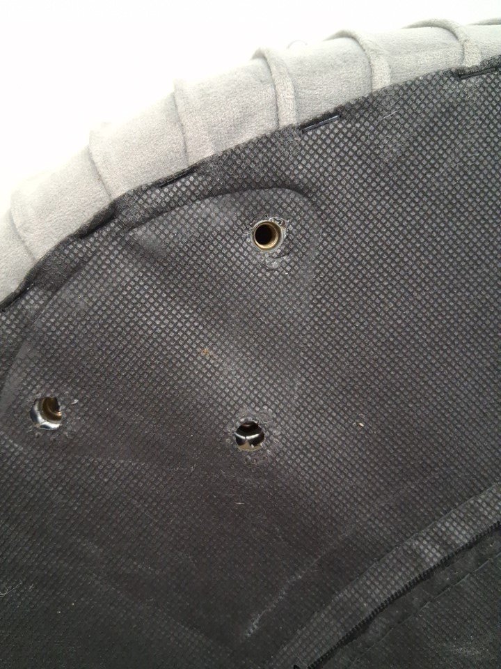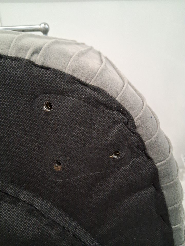 The leg holes on the underside of the seat have indentations around them and some scratches on the fabric, indicating previous assembly. There is also a small stain on one of the seats, though it should wash out fairly easily - see photos. Other these cosmetic issues, the chairs appear to be in close to new condition with no visible damage to any parts.