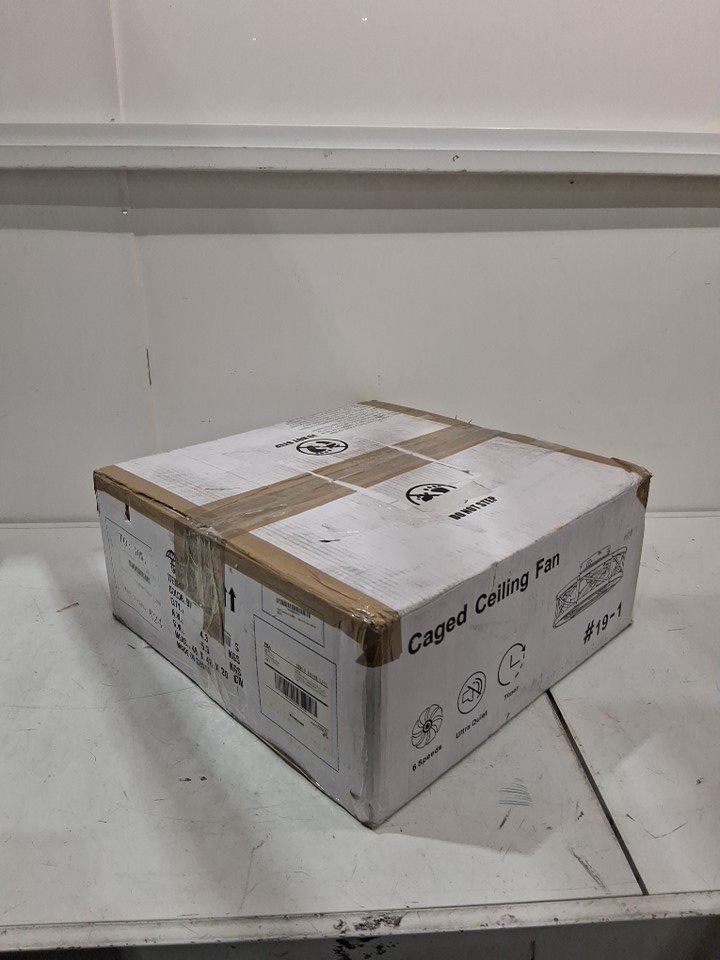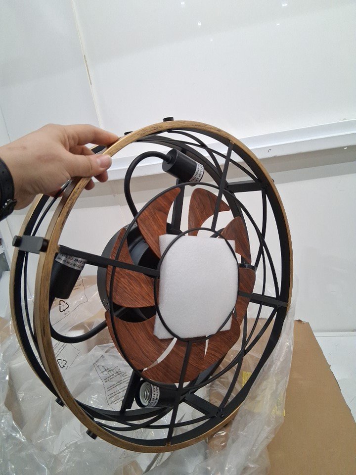 SHLUCE Farmhouse Flush Mount Caged Ceiling Fans with Lights, remote and 6 Speeds - 19" - black/gold (model: FLA003A)