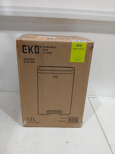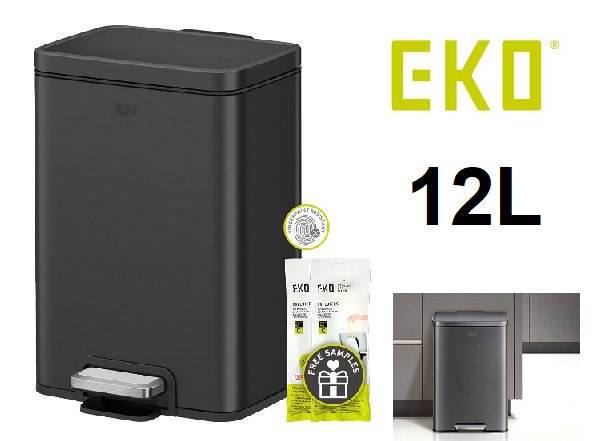 EKO Madison fingerprint-resistant Step Trash Can with Liner and 12 bags - 12L - matte black