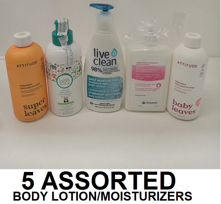 5 assorted body lotions / moisturizers - assorted brands and sizes