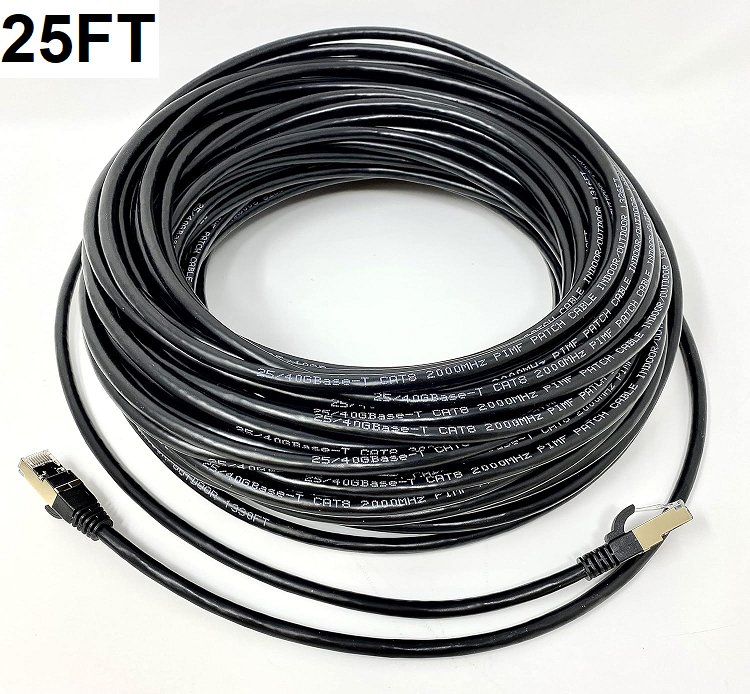 Gold Plated Shielded Ethernet RJ45 Copper Cable - 25FT - Black