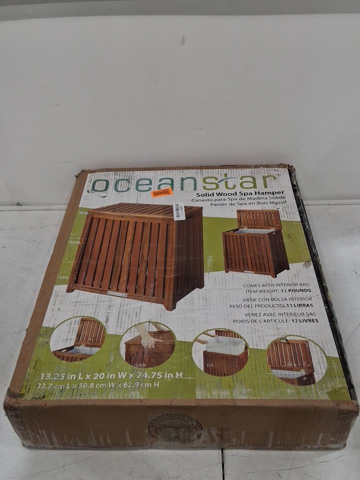 OCEANSTAR SOLID WOOD SPA LAUNDRY HAMPER - 24.75" x 13.25" x 20" - BROWN - (MODEL: TRH1330)