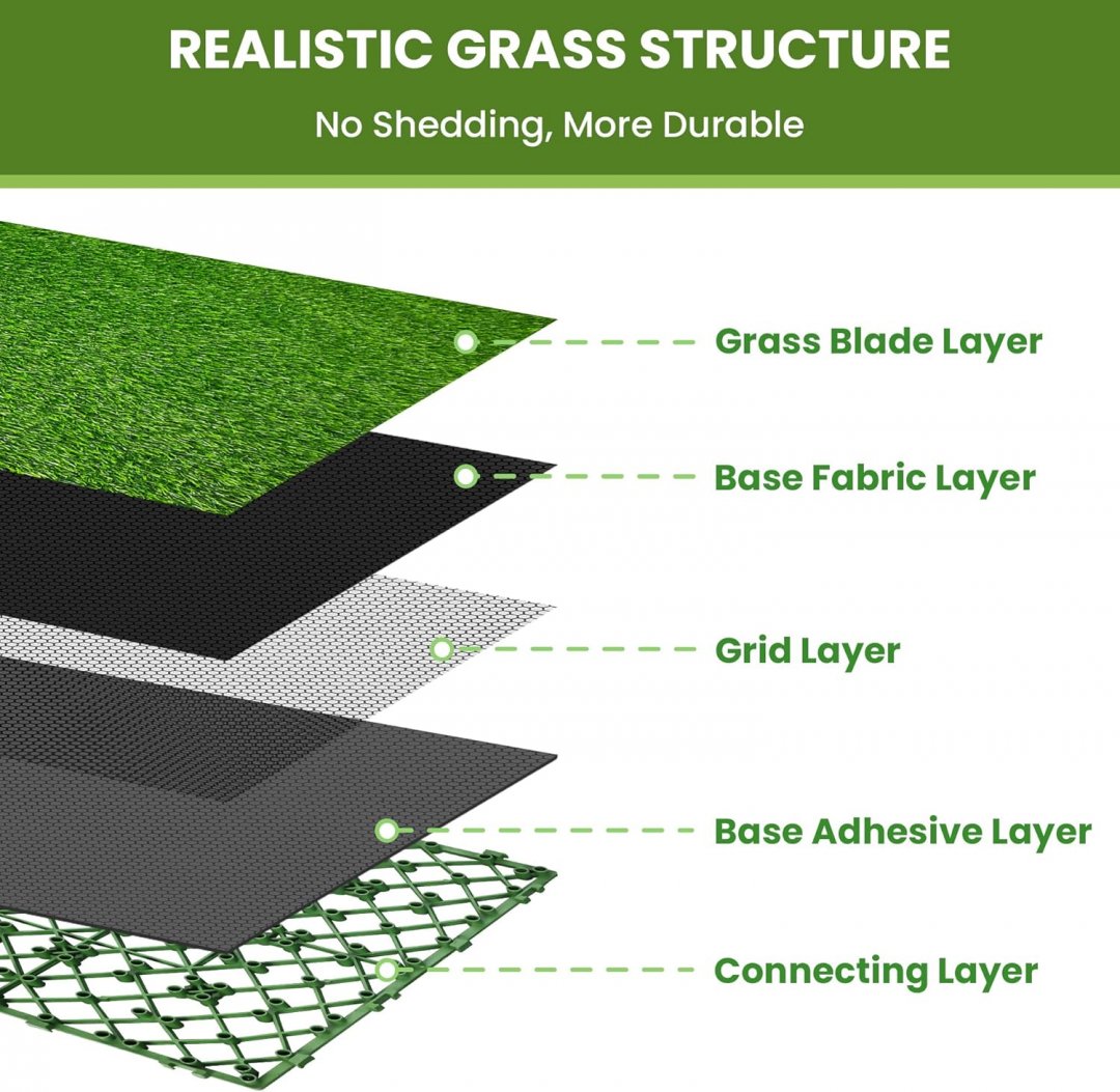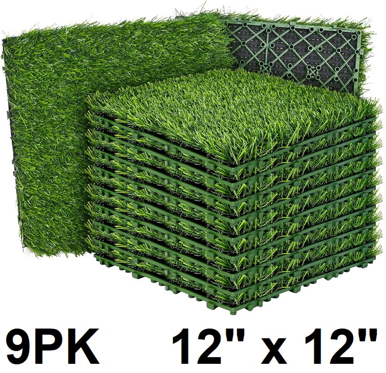 9pk dwlspce Artificial Grass Turf Tiles Interlocking Set - 12" x 12" - green