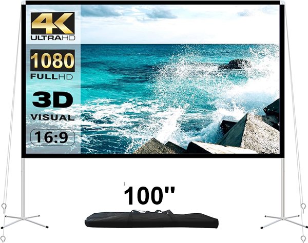 AODIOU Projector Screen W/ 100'' Stand, 100'' SCREEN W/ 16:9 RATIO - BLACK
