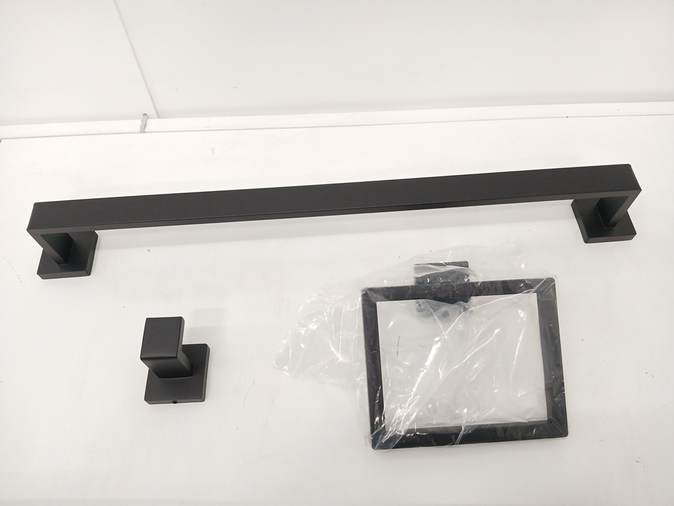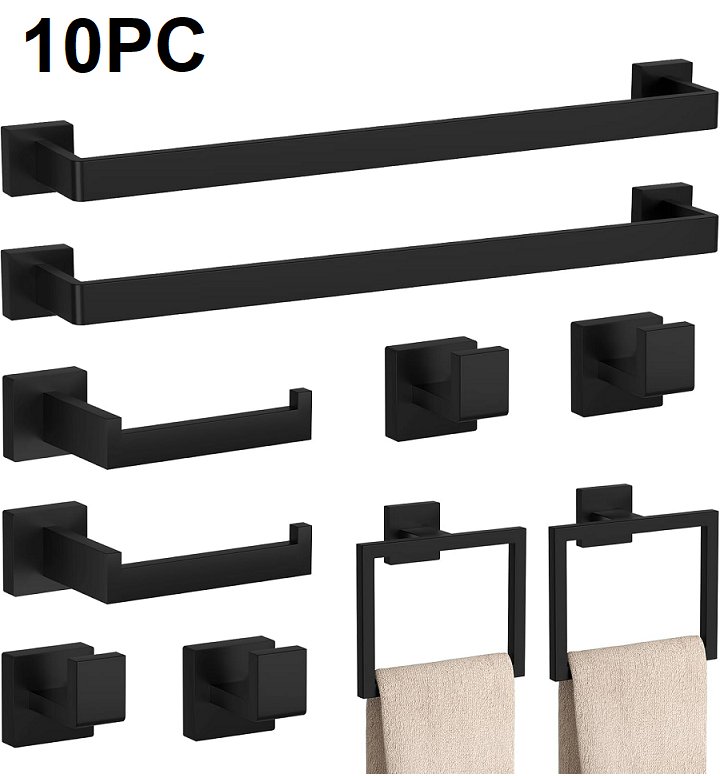 10PC Bathroom Accessories Set with towel hooks, door handles, and towel bars - Black