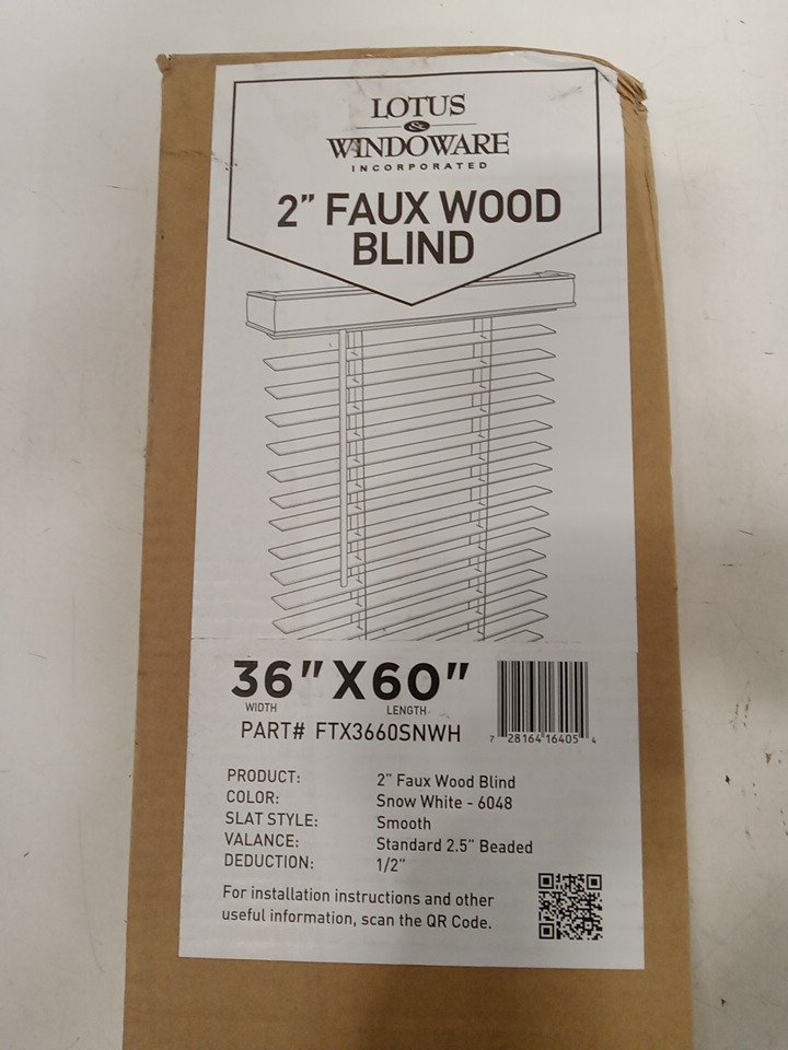 Lotus & Windoware Cordless Faux Wood Room Darkening Horizontal Blind - 36" x 60" - SNOW White