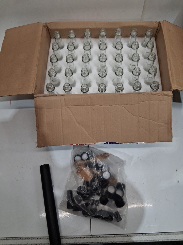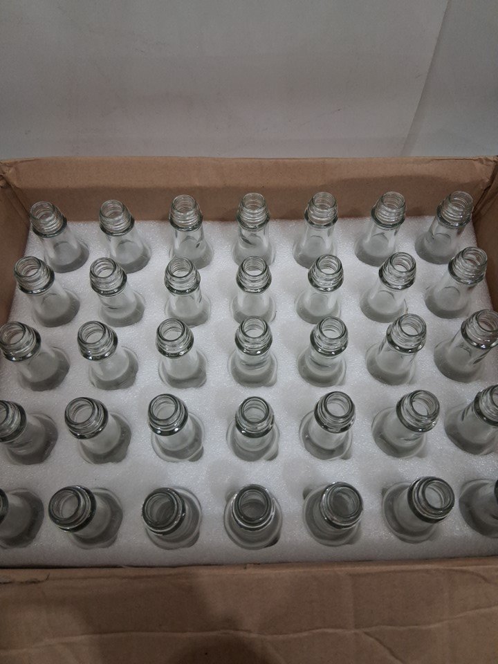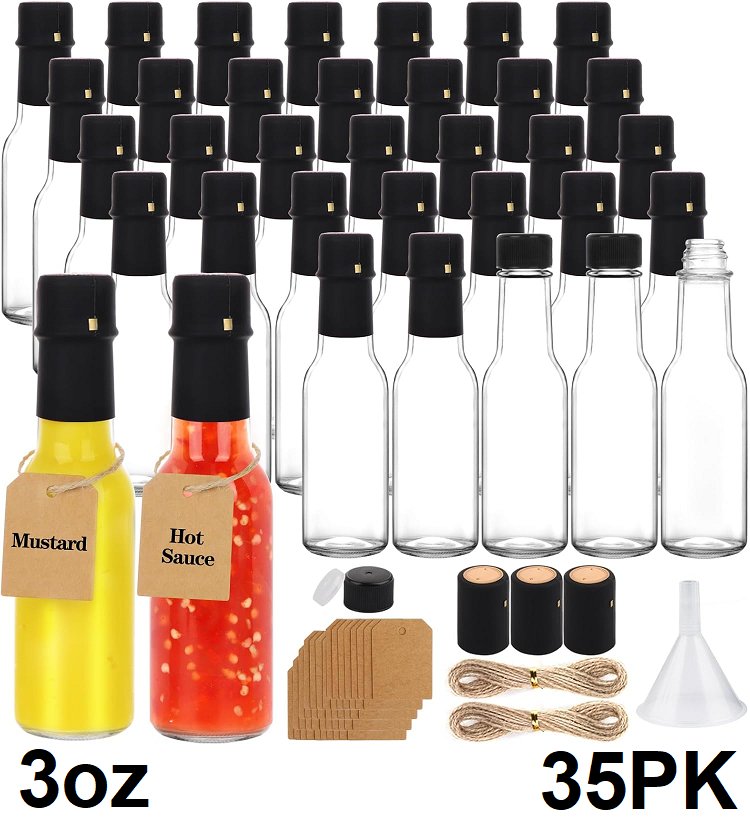 35pk GUANENA Clear Glass Woozy Bottles with Leak Proof Black Screw Caps - 3oz bottles - clear
