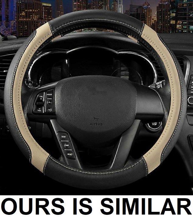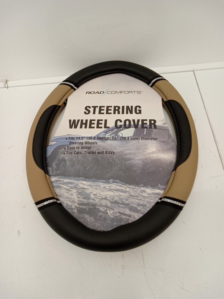 ROAD COMFORTS ANTI SLIP FAUX LEATHER STEERING WHEEL COVER - FITS MOST VEHICLES - BLACK/BEIGE (MODEL: SWC-DIAM-BEIGE)