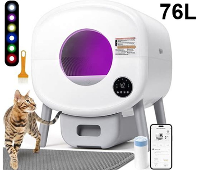 Automatic Self-Cleaning Cat Litter Box for multiple cats with app control - 76L - White/Grey