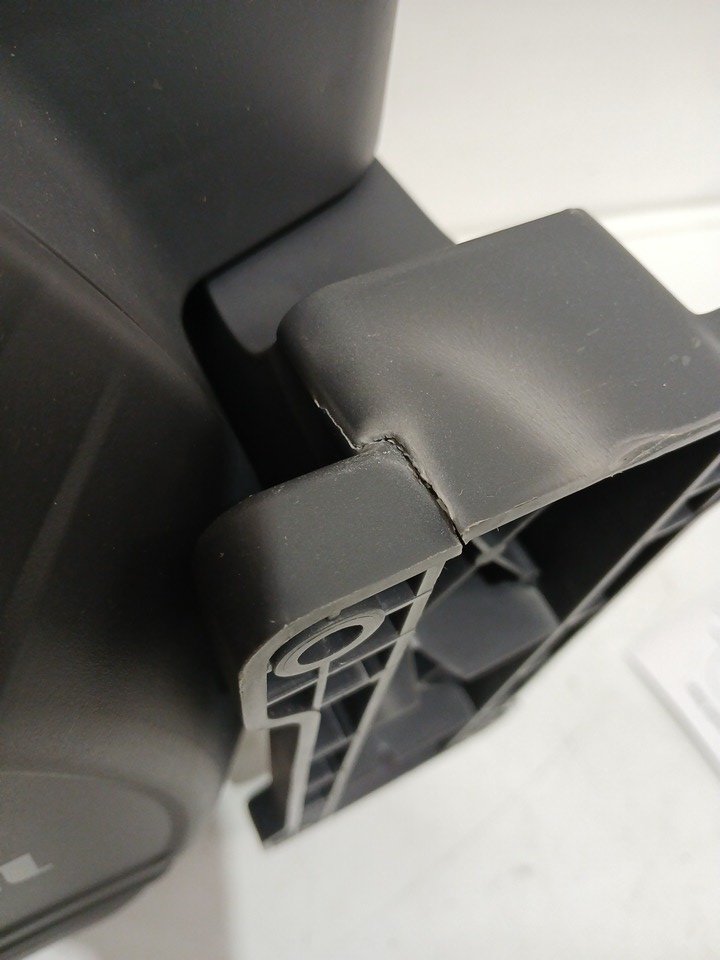 There are minor scuffs & scratches present, but does not appear used. there is a crack in the mounting hinge