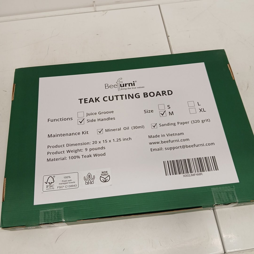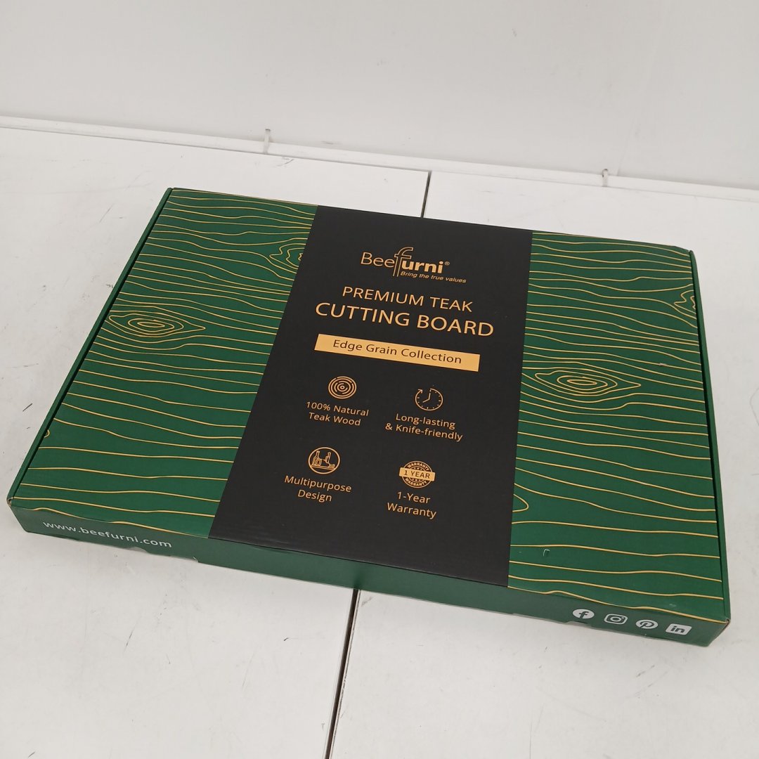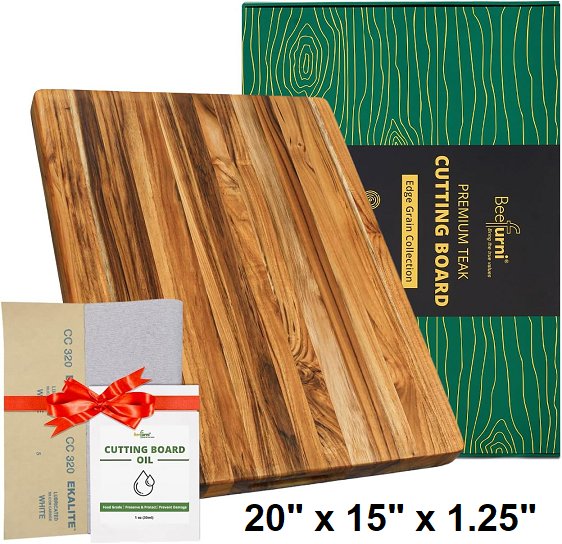 beefurni Teak Wood Cutting Board with Hand Grip, Reversible butcher block with mineral oil & sanding paper - 20" x 15" x 1.25" - Medium, Side Handles