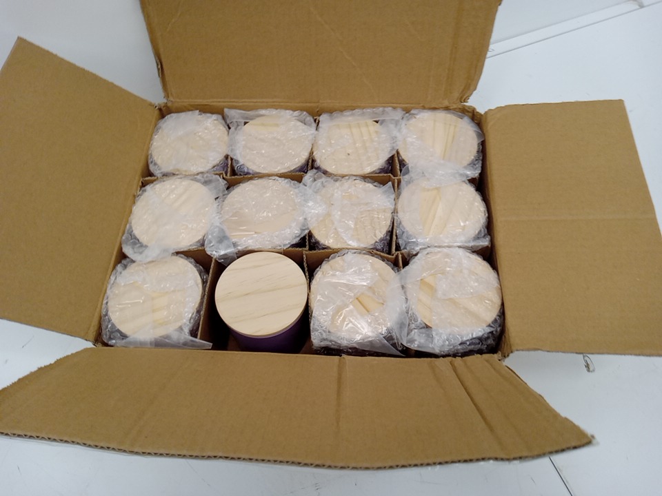 12PC REISEN EMPTY CANDLE JARS WITH LIDS - ASSORTED PURPLE - 10OZ