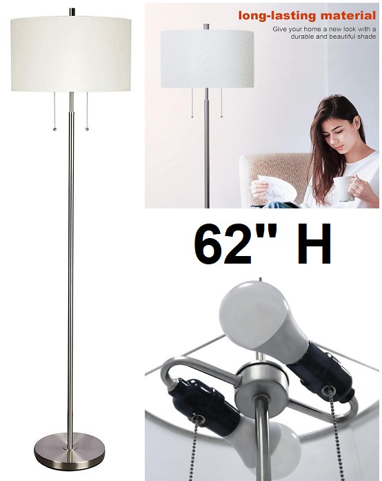 DEEPLITE DUAL BULB FLOOR LAMP LIVING ROOM LAMP - 62" H - SILVER (MODEL: DL-FL-002)