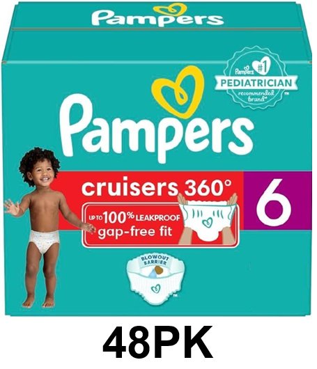48PK PAMPERS CRUISERS 100% LEAKPROOF 360° GAP-FREE FIT DIAPERS - SIZE 6