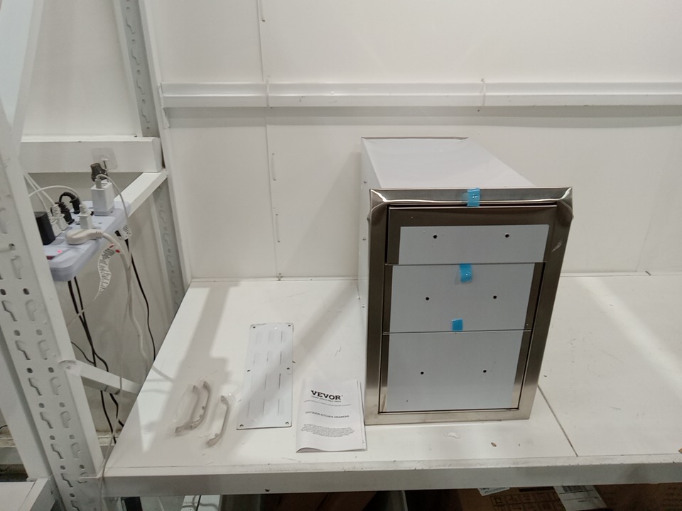 there are some dents to the front and top of the cabinet and the middle drawer is a little stiff on the pull out brackets, please see photos
