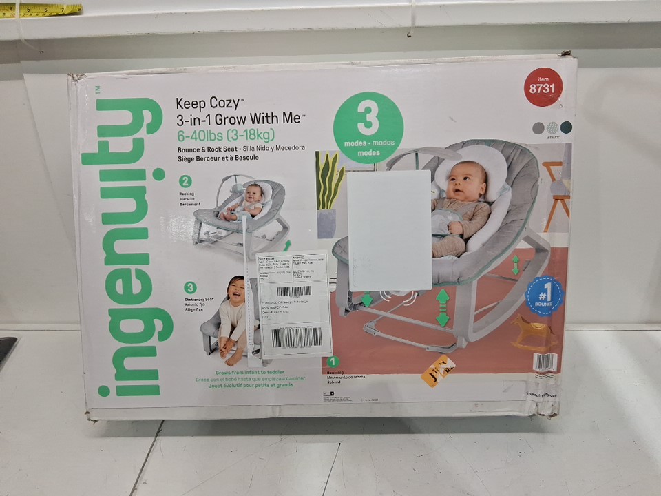 Ingenuity Keep Cozy 3-in-1 Grow with Me Vibrating Baby Bouncer Seat & Infant to Toddler Rocker - grey/white/green (model: 12428)