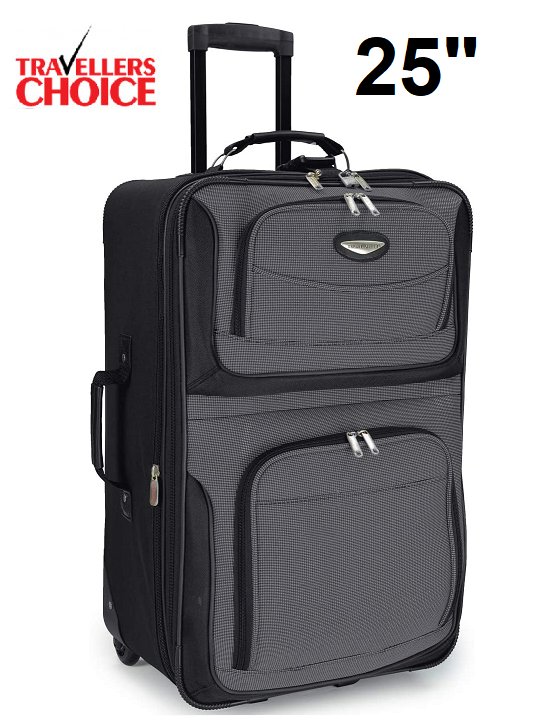 TRAVELER'S CHOICE TRAVEL SELECT AMSTERDAM EXPANDABLE ROLLING UPRIGHT LUGGAGE BAG - 25" - GREY (MODEL: TS6950G25)