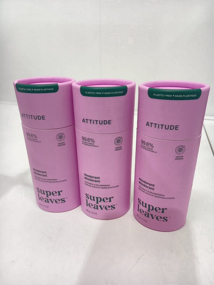 3 attitude super leaves deodorants - coconut & wild berries scent- 85g/each