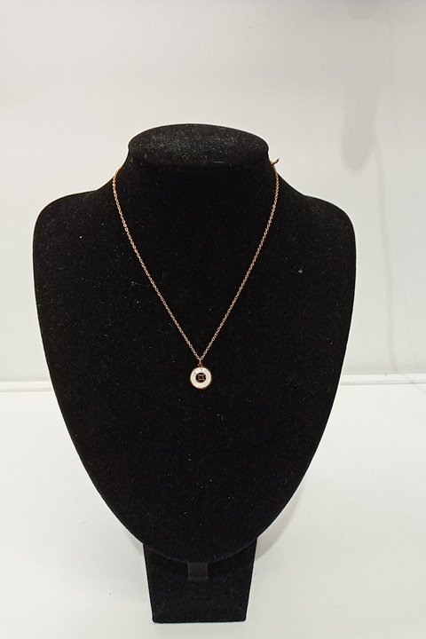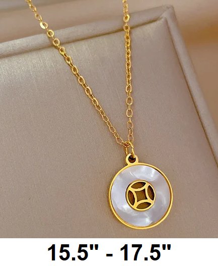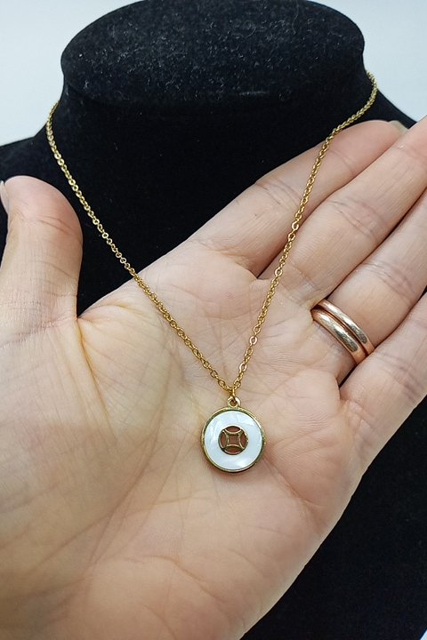 women's resin enamel disc pendant chain necklace - 15.5" - 17.5"/12mm charm - stainless steel gold/white.