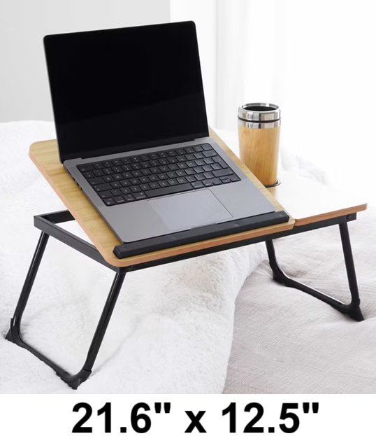 foldable laptop table with cup holder 21.6" x 12.5" - black/wooden