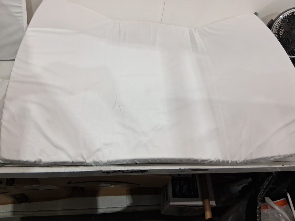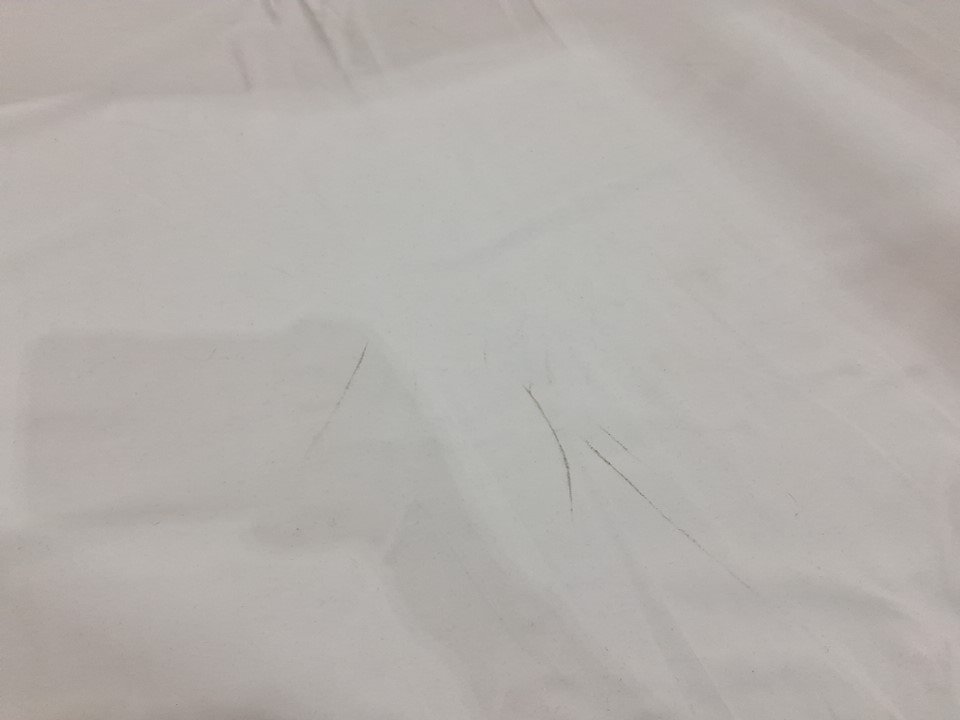 items fabric has some pilling on the top edge, there is dust on the feet and other pieces and a dark mark and hairs on the bottom cushion - see photos