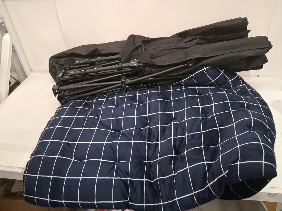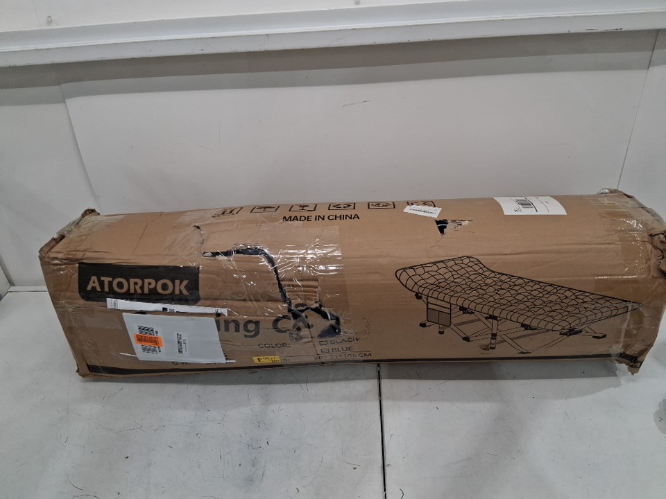 ATORPOK Camping Cot With Cushion - Portable Folding Bed With Carry Bag - Supports 450LBS - Blue/Black