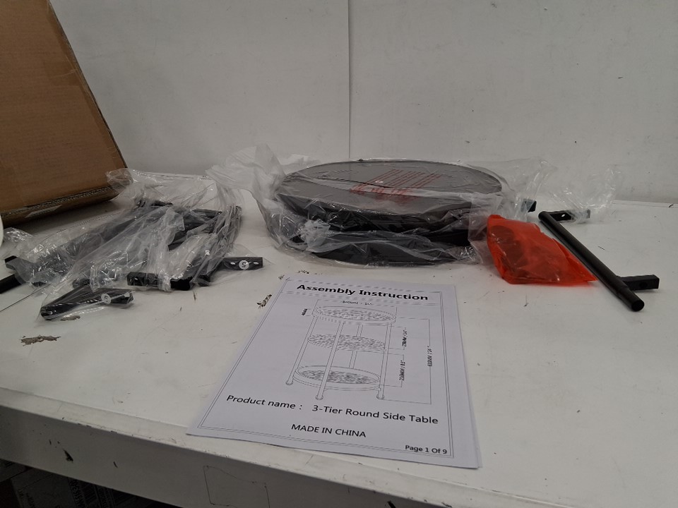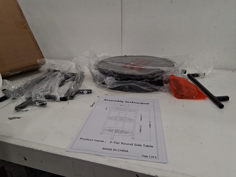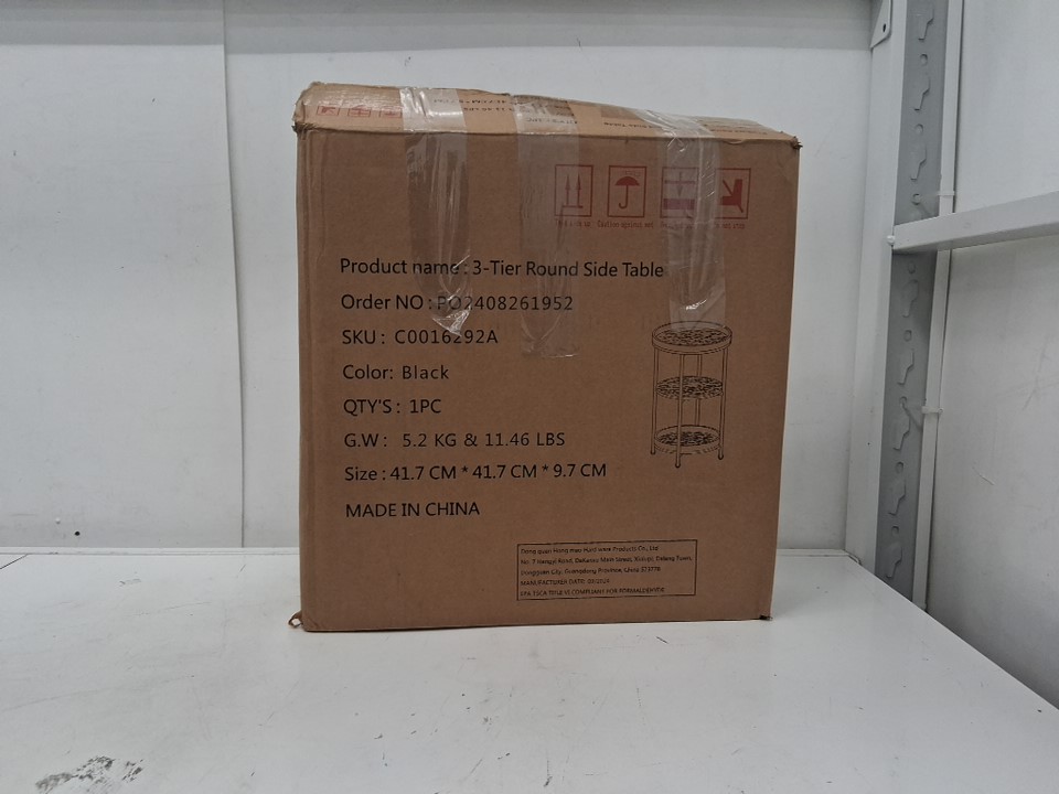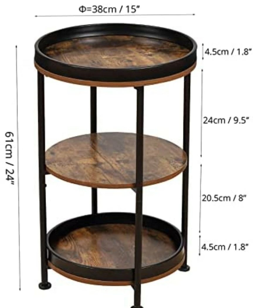 dulcii industrial round end table, 3 tiers round side table - brown/BLACK