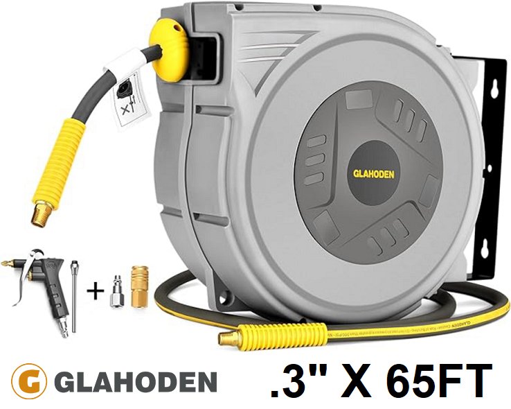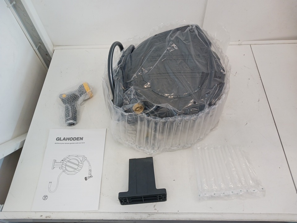 GLAHODEN Retractable Garden Hose Reel with 1/2″ x 65 ft Expandable Hose, Durable ABS Casing, 180° Swivel Mount, Auto-Locking Retractable Mechanism, Reinforced Braided Hose, Wall-Mountable and Free-Standing Options - Grey (Model: NW-J20)