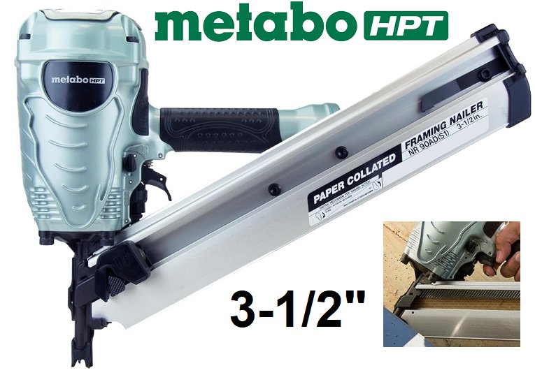 Metabo HPT Framing Nailer - 30 Degree Magazine, Accepts 2-Inch to 3-1/2-Inch Paper Collated Nails - (model: NR90ADS1)