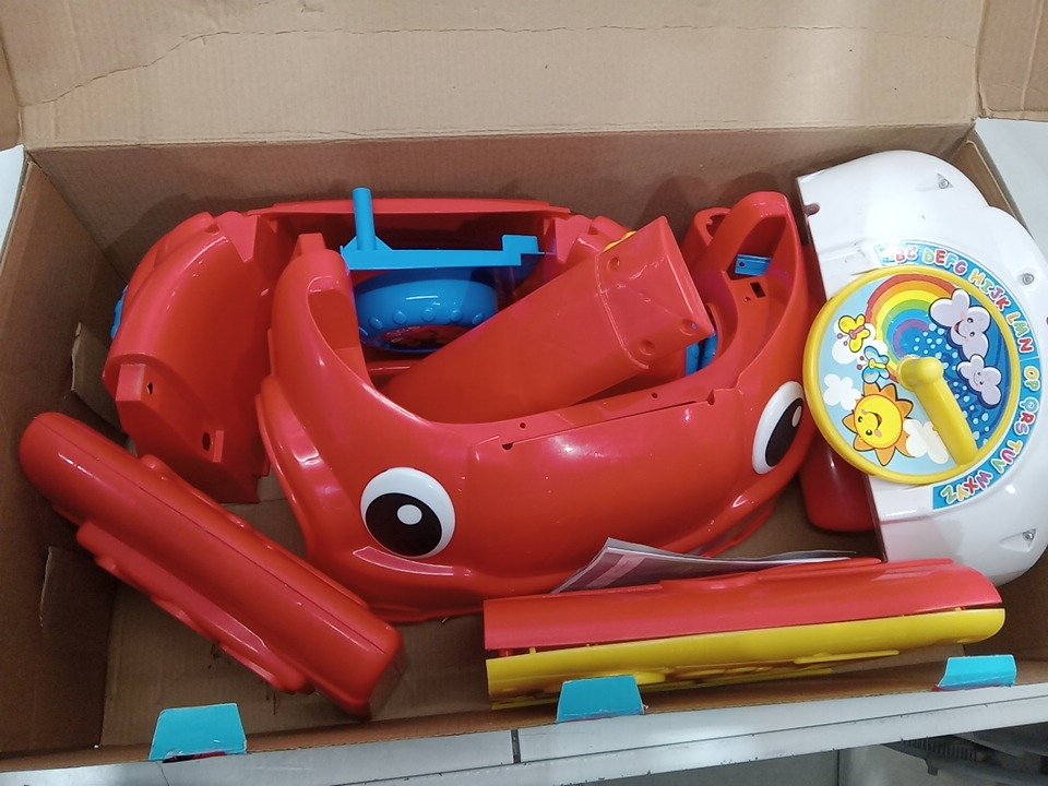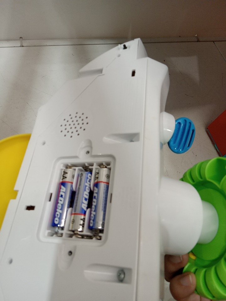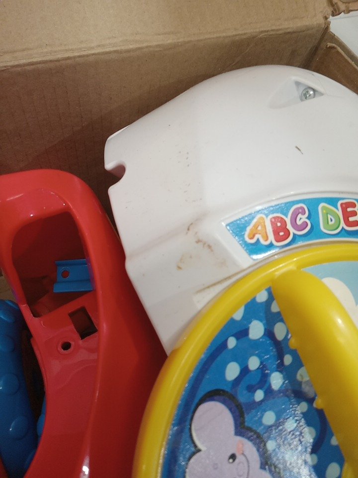 Missing the blocks. Has dirt on some pieces from previous use. Can likely be cleaned. Tested for power only, batteries are not included.