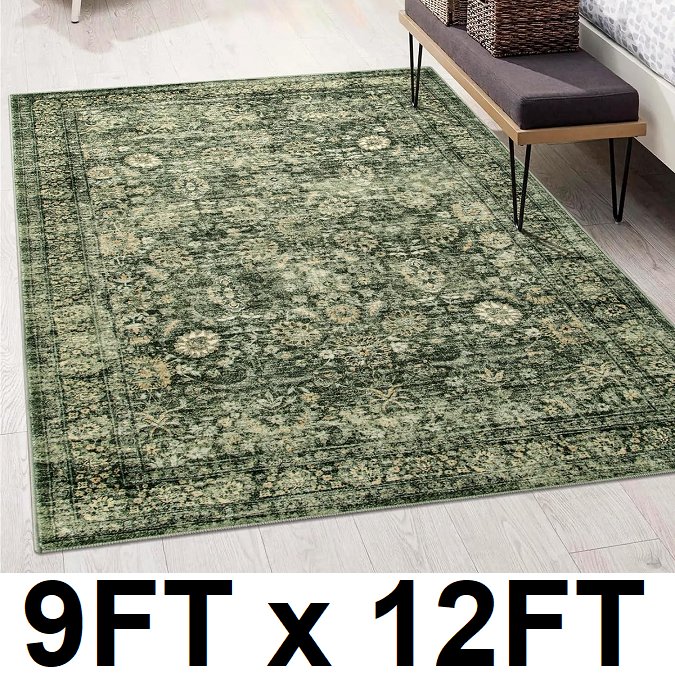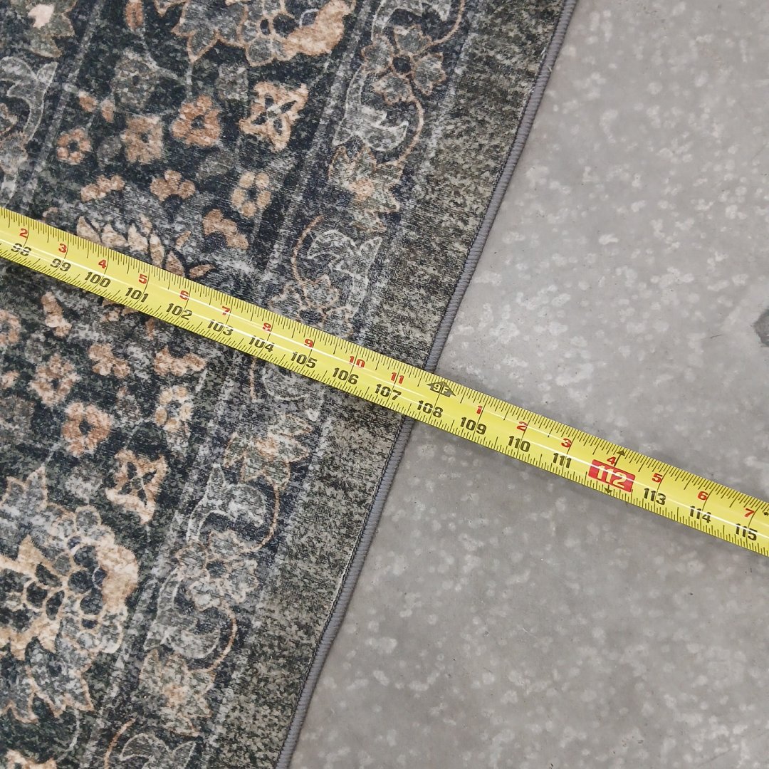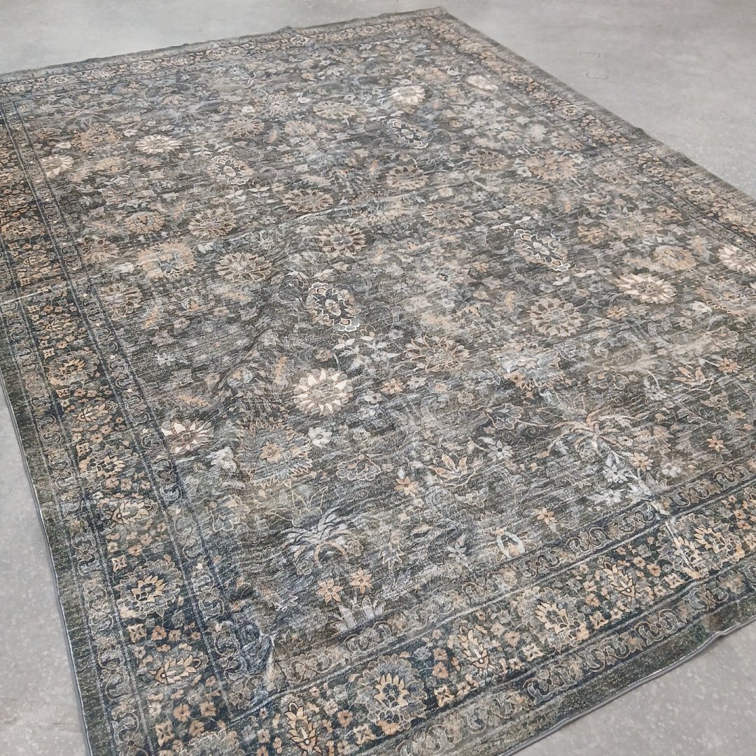 Please be aware there may be some dust from inspection, as well as the rug colors appear to be off from the camera quality. It is meant to be vintage distressed green.