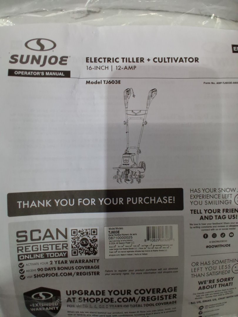 SUNJOE ELECTRIC TILLER/CULTIVATOR - 16" - 12 AMP - GREEN/BLACK (MODEL: TJ603E)