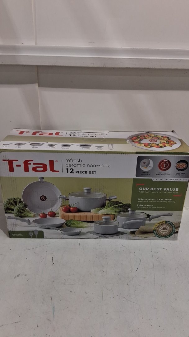 12pc t-fal Refresh Ceramic Nonstick Cookware Set - MOON GREY - ( MODEL: C487SC64 )