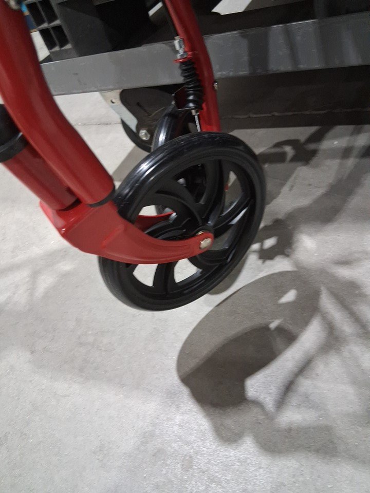 DRIVE MEDICAL 4 WHEEL ROLLATOR WALKER STURDY STEEL FRAME WITH BASKET FOR PERSONAL ITEMS, 7.5" CASTER WHEELS IDEAL FOR INDOOR AND OUTDOOR USE - RED (MODEL: 10257RD-1)