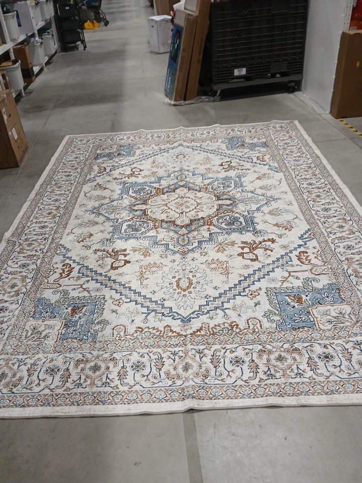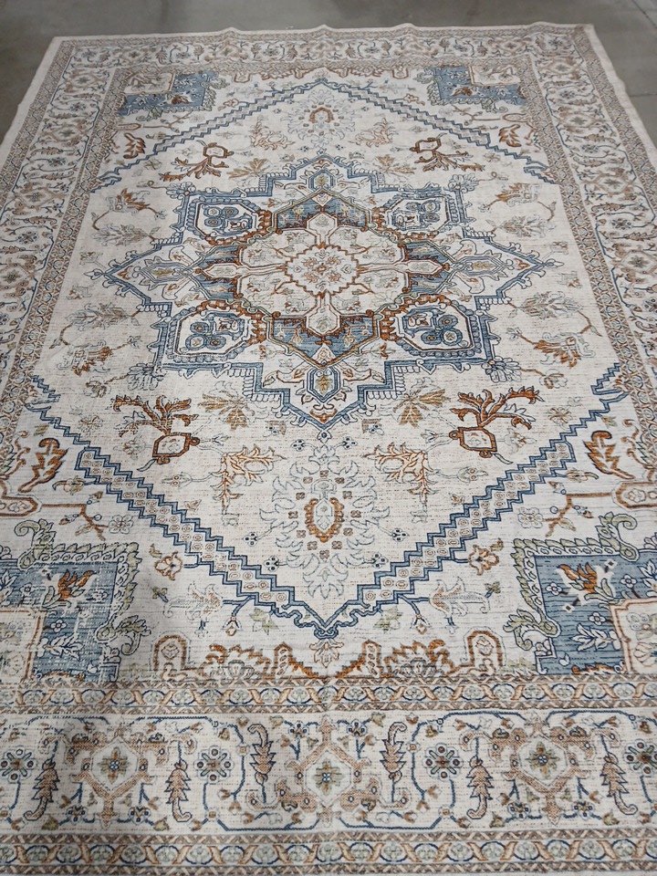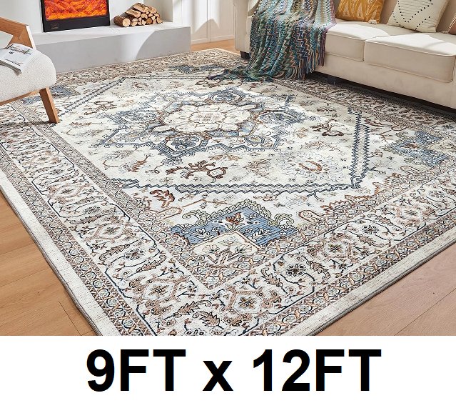 OPPODREAM WASHABLE Area Rug with Non Slip Backing - 9FT x 12FT - grey/blue/cream (Style: op-600-bu1-9x12ft)