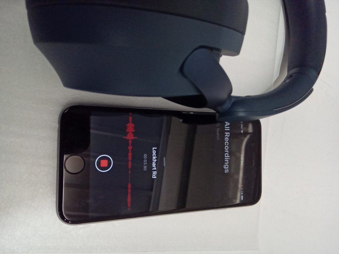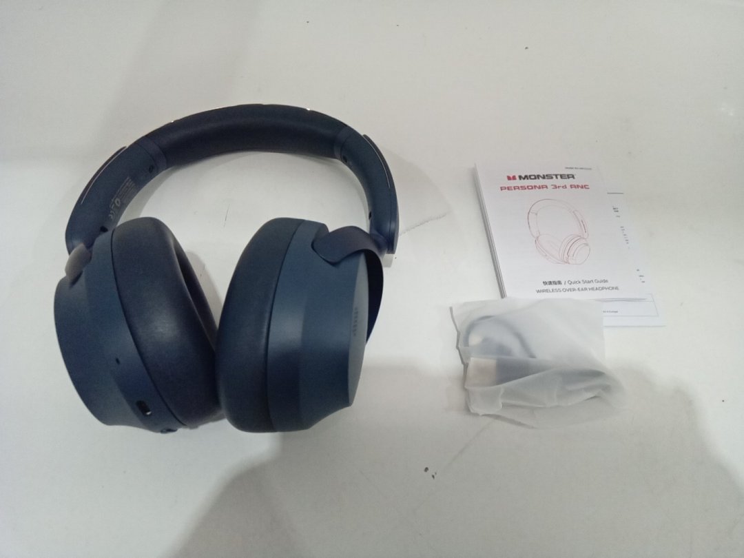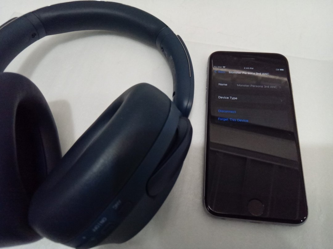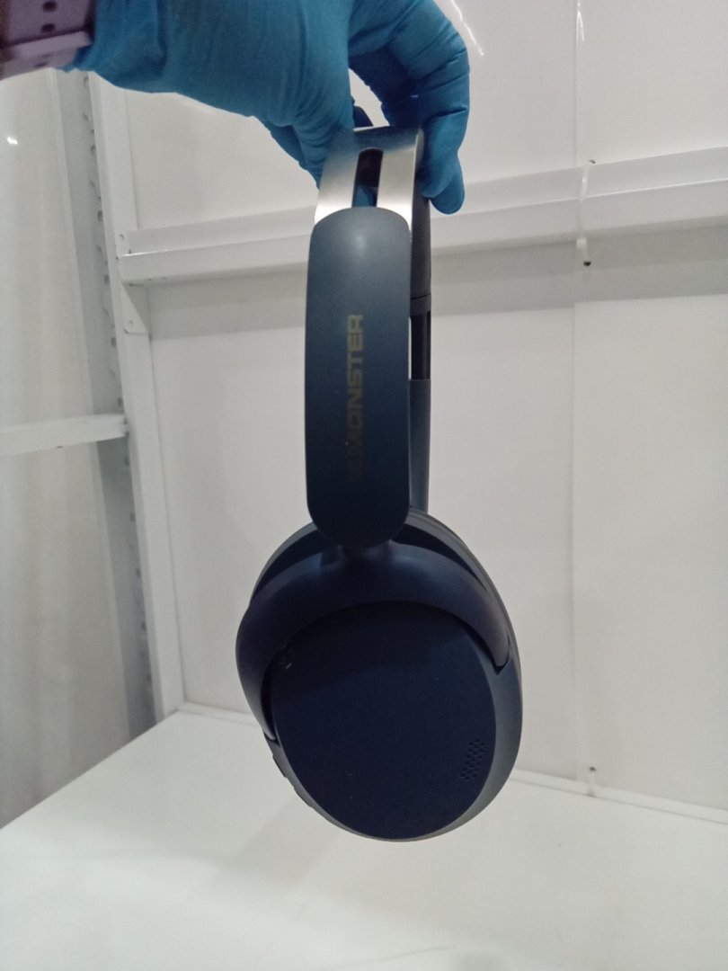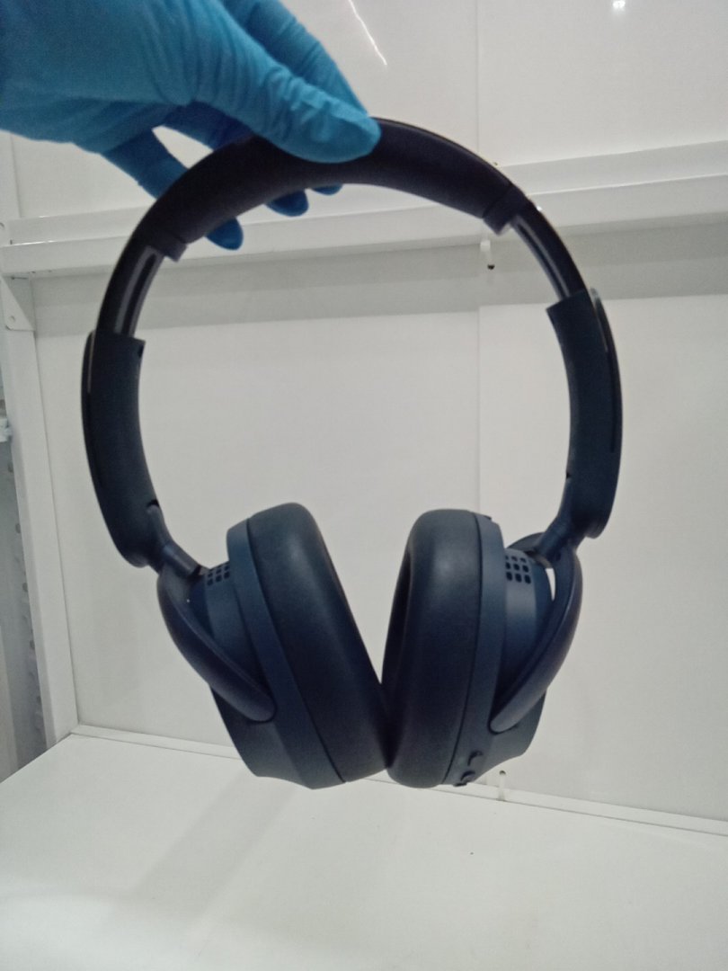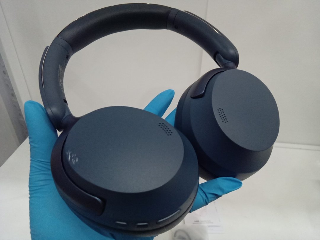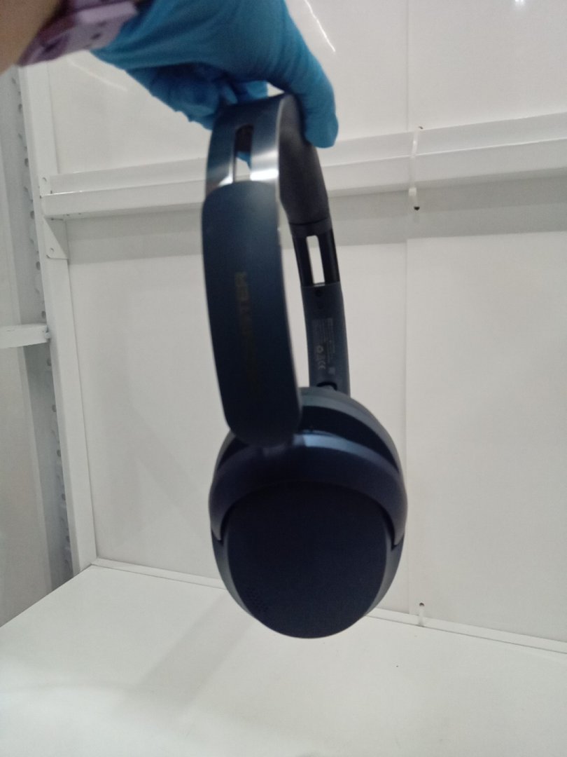 There is a small but noticeable scuff on the outside of the right earcup and light wear on the cushions from prior use.