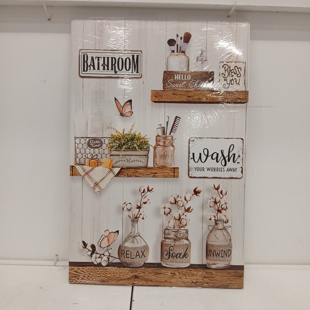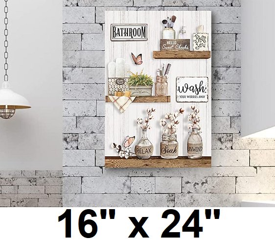 RUDIXICO Framed Farmhouse Rustic Bathroom Decor Wall Art - 16" x 24" - Shelves, Flowers, Towels