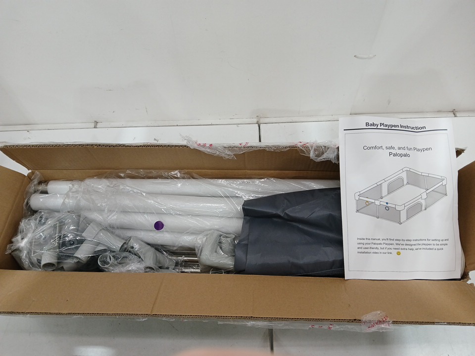 PALOPALO Baby Playpen with Suction Cup Bases - 71" X 59" - GREY/WHITE (MODEL: PL-BWL-001)