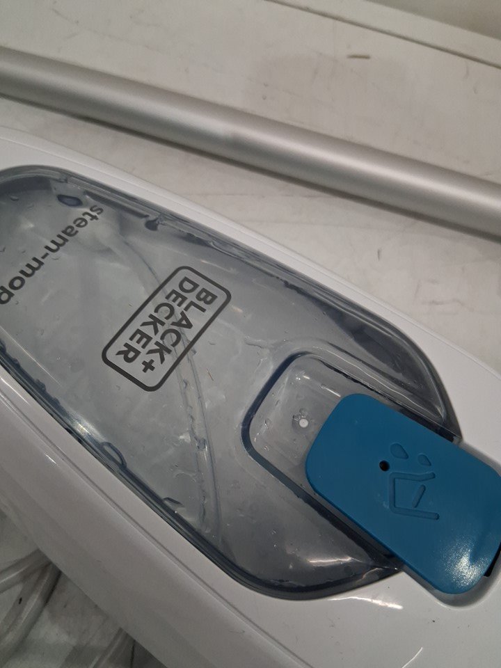 The item has water in reservoir and dirt on mop indicates previous sue. tested for basic power only.