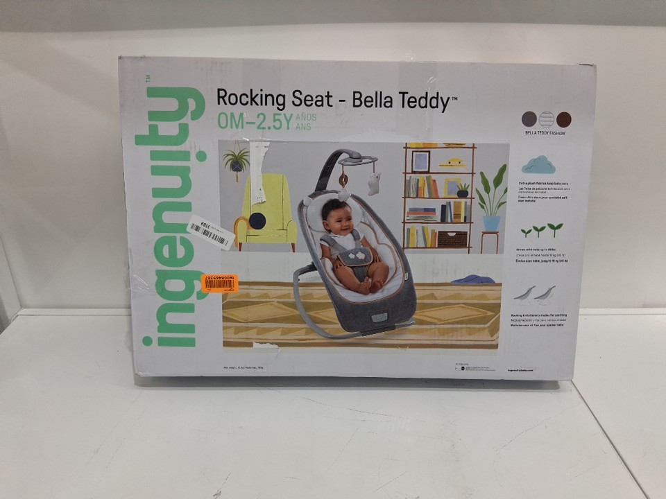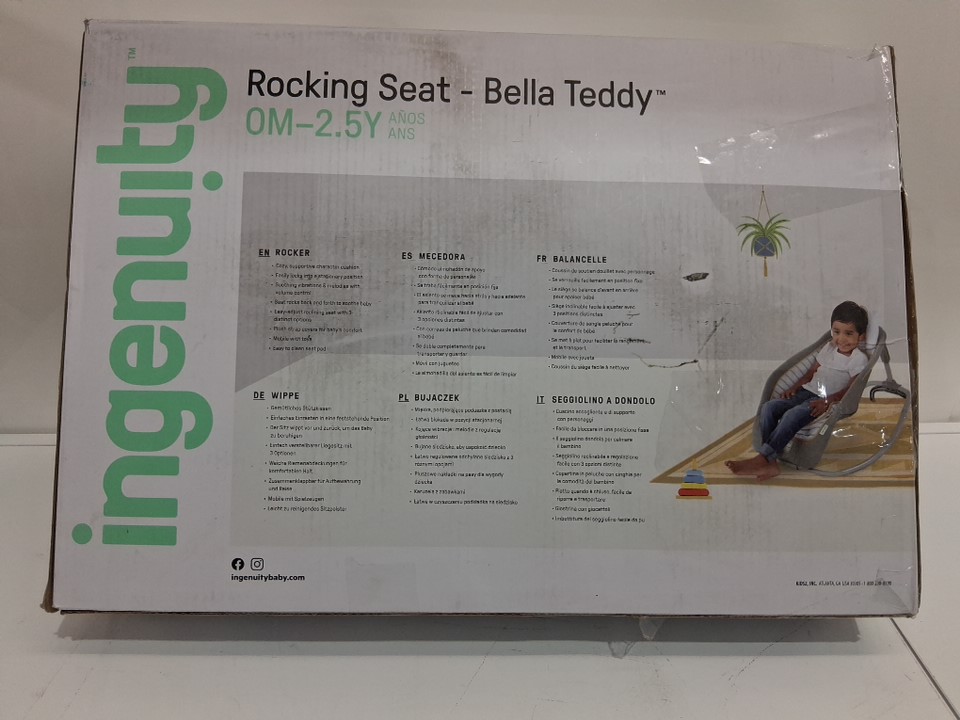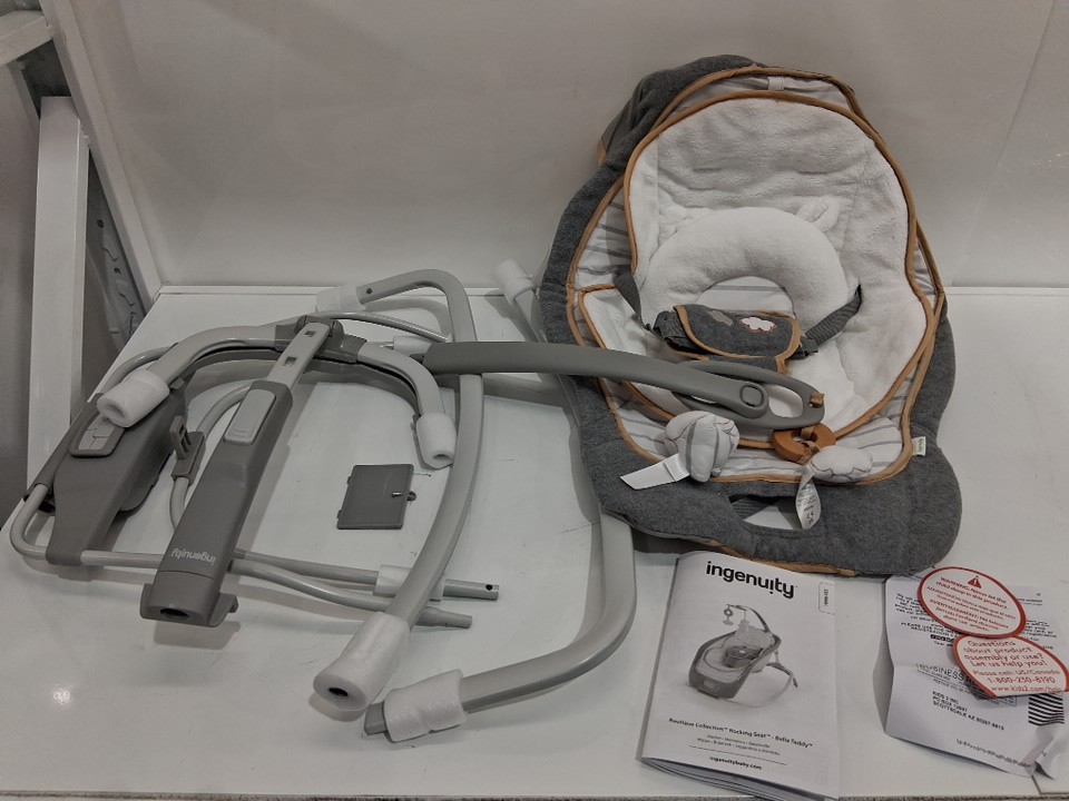 INGENUITY BOUTIQUE COLLECTION SWING 'N GO PORTABLE SWING WITH MULTIPLE SOUNDS/SWING SETTINGS - 20LBS CAPACITY - BELLA TEDDY IN GREY (MODEL: 11023-ES)