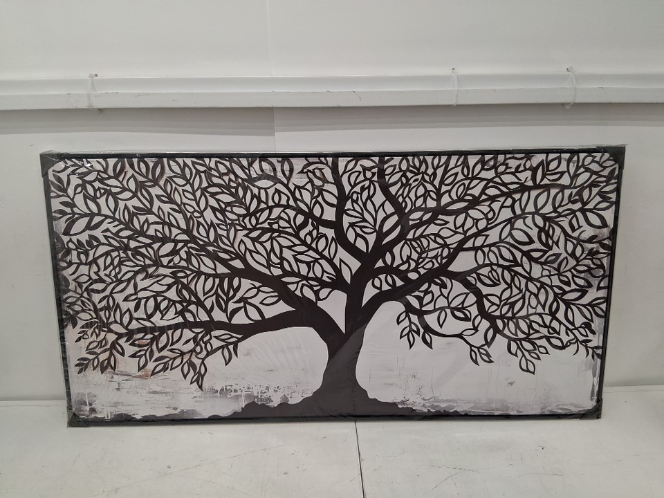 Framed Tree of Life Abstract Wall Art - 48" X 24" - Black/White