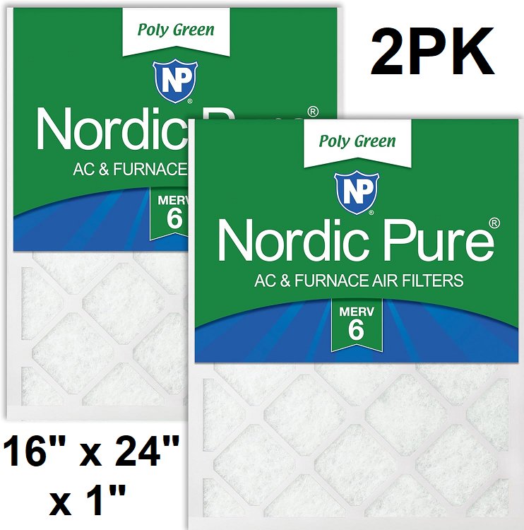 2pk Nordic Pure Poly Green AC & Furnace Air Filter - 16" x 24" x 1" - white