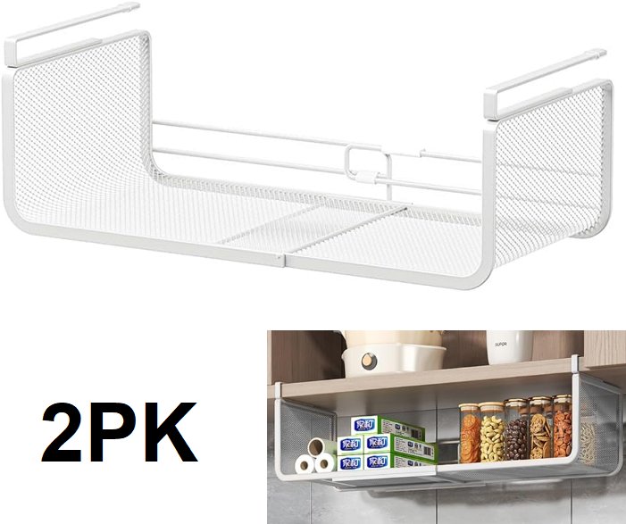 JANEBERT expandable under shelf basket organizer - 14.1" - 23.6" x 9.4" x 7" - white