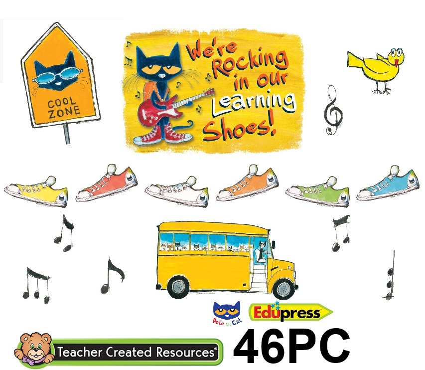 46PC Teacher Created Resources Edupress, Pete the Cat: We're Rocking in Our Learning Shoes Bulletin Board. -assorted colours-(model: EP62383)
