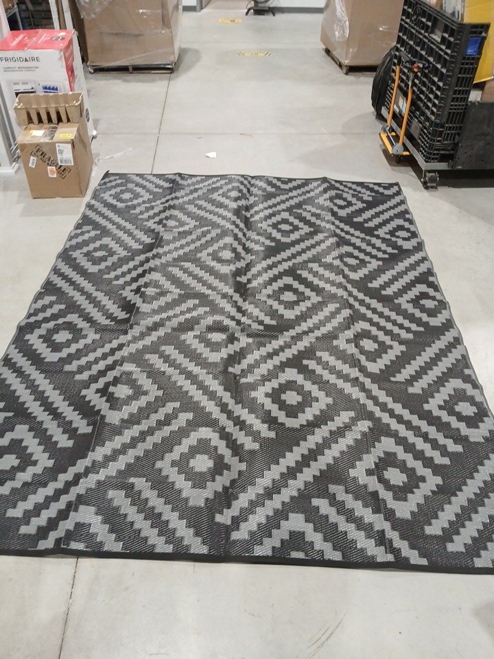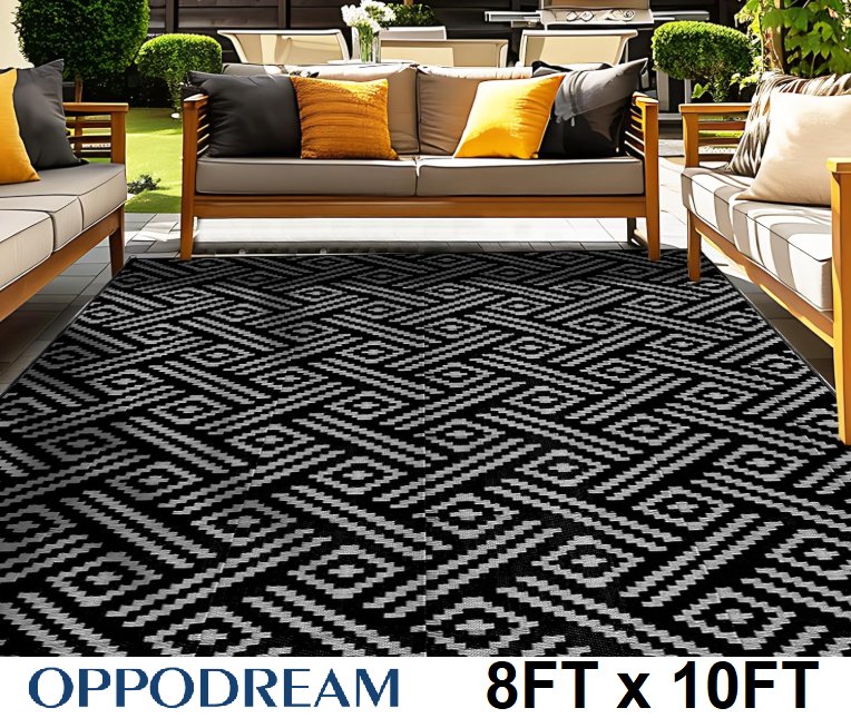 OPPODREAM OUTDOOR WATERPROOF REVERSIBLE PLASTIC STRAW PATIO RUG - 8ftx10ft - grey/BLACK