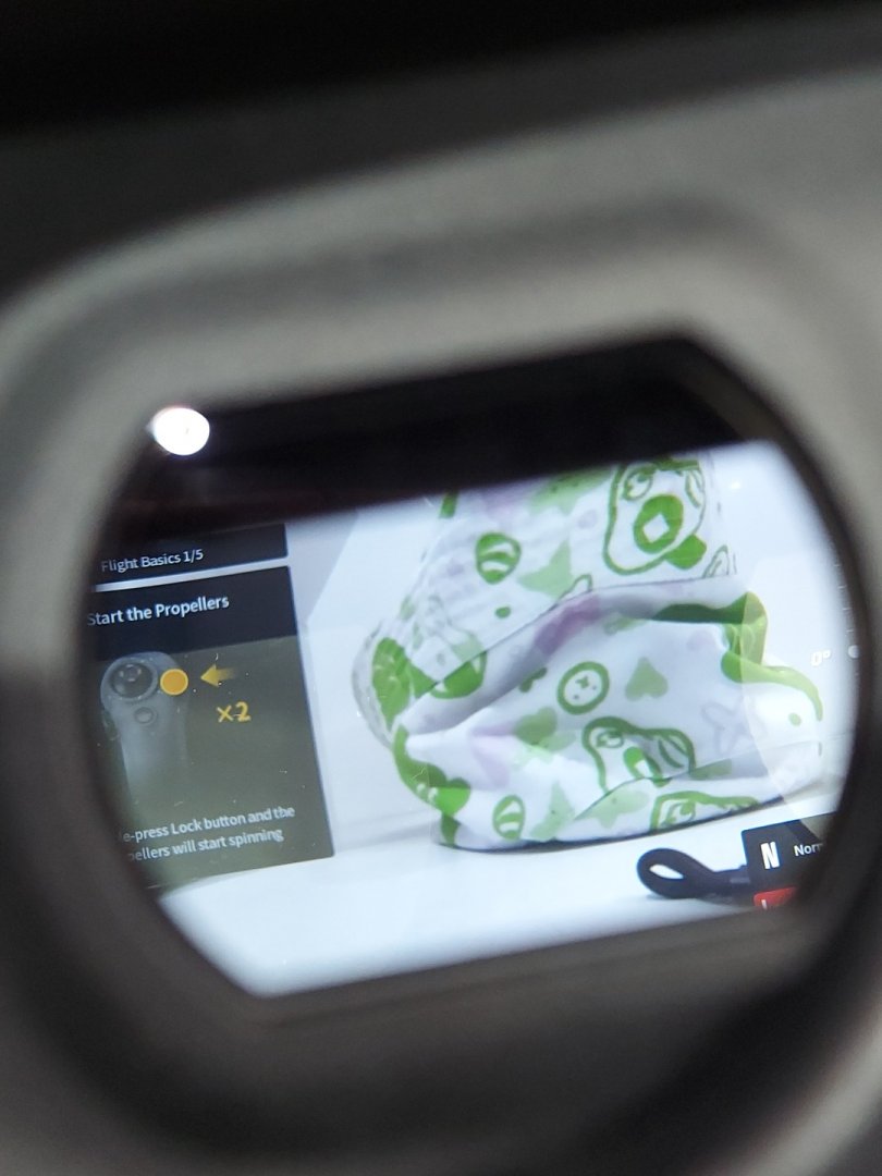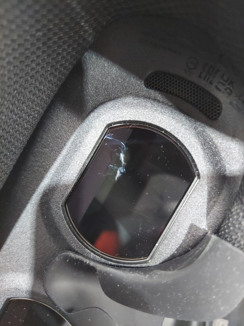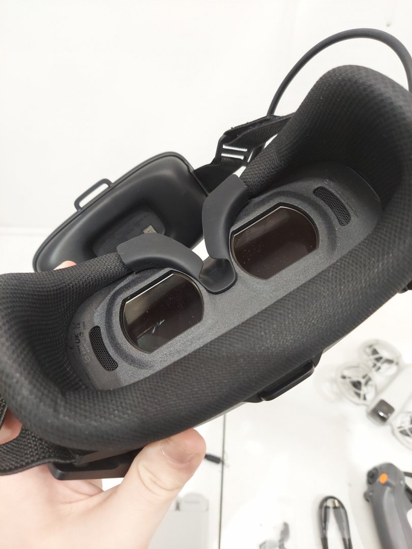 Item arrived with a fairly noticable cosmetic scratch on the inner view screen but nothing that effects viewing when in use. There are also minor cosmetic scuffs on the item but nothing significant. tested with a DJI neo drone staff had on hand(not included).