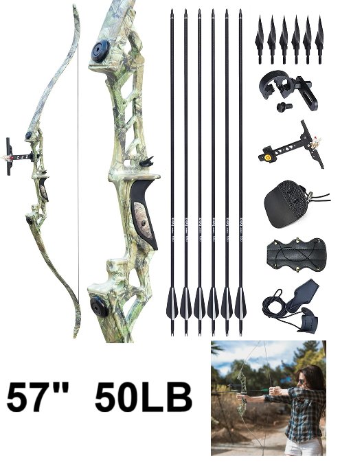 Tongtu Recurve Bow and Arrows for Right Hand Archery - WITH ACCESSORIES - 57" - 50LB - GREEN Camouflage