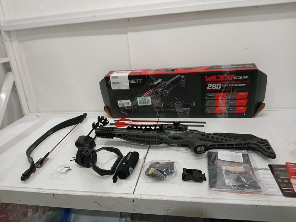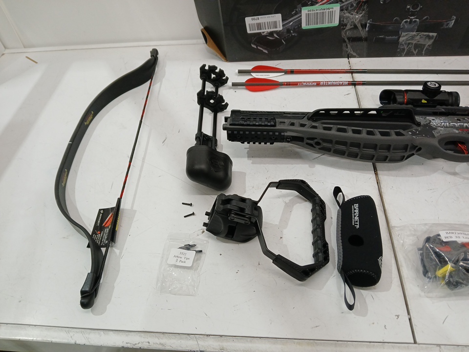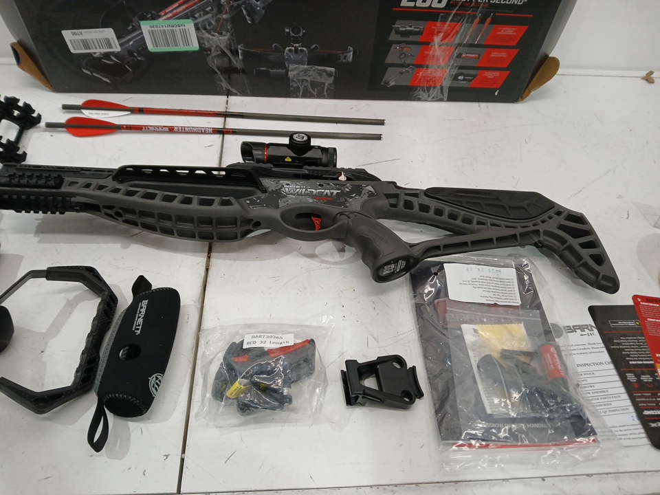 BARNETT wildcat crx lightweight tatical recurve crossbow with red/green 3 dot scope, Quick Detach Quiver & 2 headhunter bolts - 280 fps - 66lbs - black/red (model: bar78232)