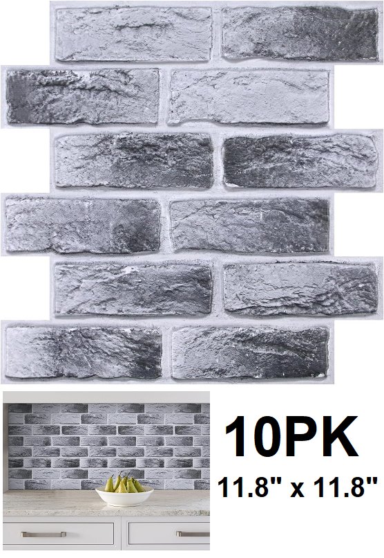 10PK Commomy Peel and Stick Brick Wall Panels - 11.8” x 11.8” - grey