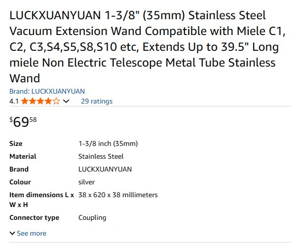 LUCKXUANYUAN 1-3/8" (35mm) Stainless Steel Vacuum Extension Wand, Extends Up to 39.5" Long - Non Electric Telescope Metal Tube Stainless Wand